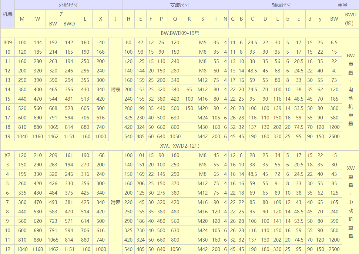 BW.BWD XW.XWD型(單級(jí))擺線(xiàn)針輪減速機(jī)