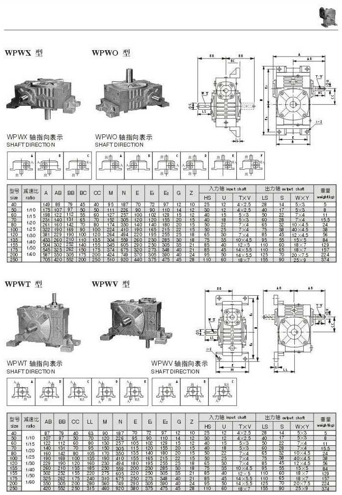 WPWX, WPWO,WPWT,WPWV型型號(hào)參數(shù)圖表
