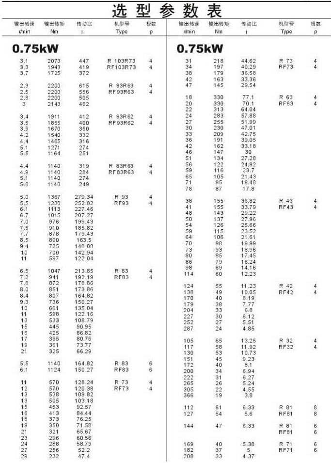 選型參數表0.75kW(續(xù))